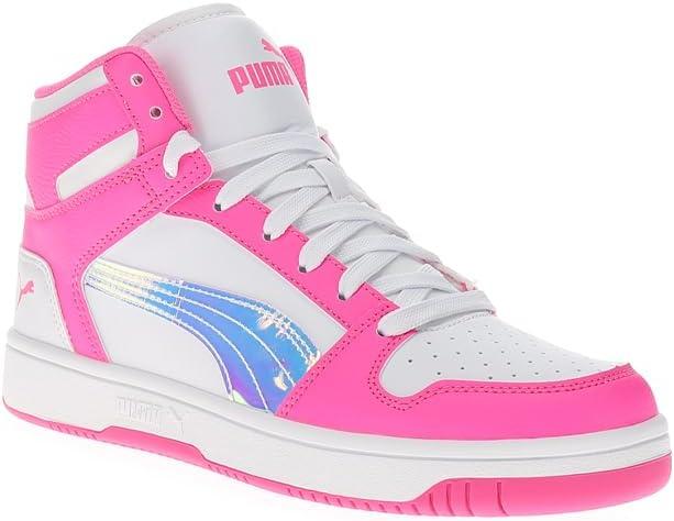 The PUMA Unisex-Child Rebound Layup Mid Sneaker is the perfect blend of performance, comfort, and style. Designed for both boys and girls, this high-top sneaker draws inspiration from classic basketball shoes, offering a modern twist for the streets. Whether for active play, school, or basketball, this sneaker ensures your child stays stylish and supported. Featuring a synthetic leather upper, this sneaker is durable enough to withstand all the demands of active kids. The SoftFoam+ footbed provides enhanced cushioning and support, while the thick padded tongue and collar ensure a comfortable fit. The non-marking rubber outsole delivers reliable traction, making it perfect for basketball courts, playgrounds, or just everyday wear. Distinctive PUMA branding, including the Logo on the tongue and Formstrip on the lateral side, gives these sneakers a sporty, dynamic look. These features not only enhance style but also showcase your child’s unique personality.In addition to style and performance, the PUMA Rebound Layup Mid Sneaker is crafted with sustainability in mind. The leather used in this product comes from a Leather Working Group (LWG) certified tannery, supporting responsible leather production practices.Whether your child loves basketball, running, or simply needs a stylish shoe for everyday adventures, this sneaker checks all the boxes for comfort, durability, and design.