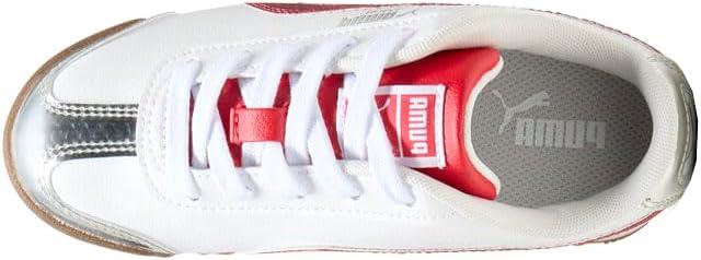 PUMA Unisex-Child Roma Sneaker(Puma White-for All Time Red-puma Silver)