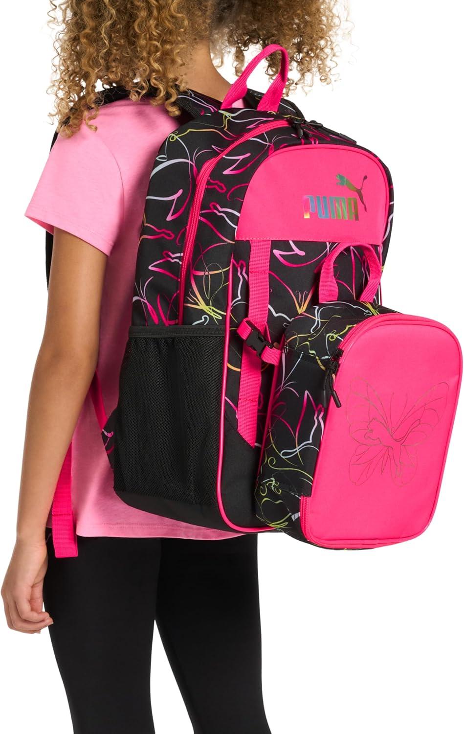 PUMA Unisex Kid’s Colony Lunch Kit & Backpack Combo, Black/Metallic Silver, Medium(Knockout Pink)