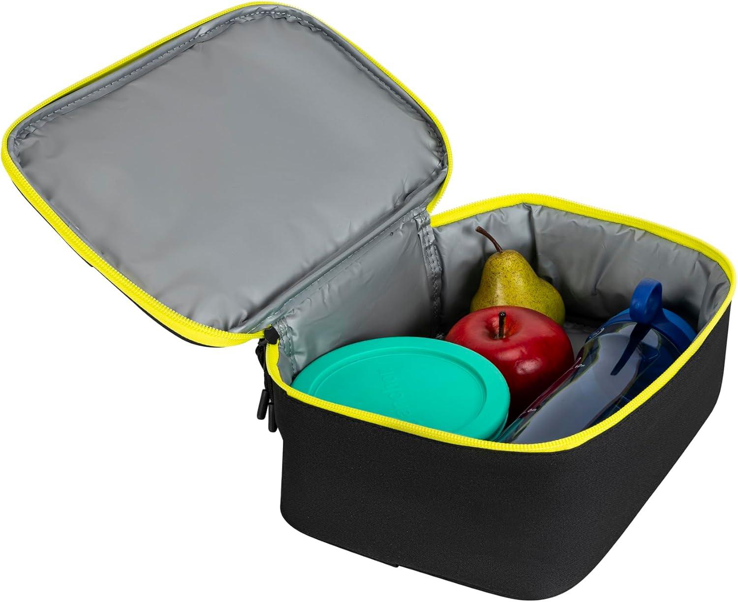 FEATURES: This lunch box has a zip closure and fully padded insulated lining to keep meals fresh. The exterior zip pocket offers extra storage for snacks or utensils, while the carry handle with a release clip makes it easy to grab and go.