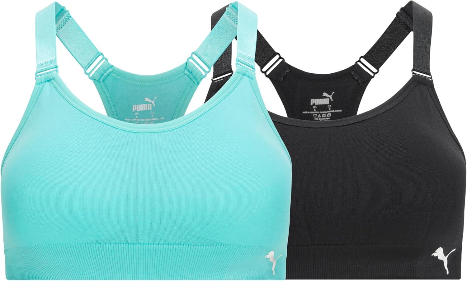 PUMA Women’s 2 Pack Seamless Sports Bra(Aquatic/Black)