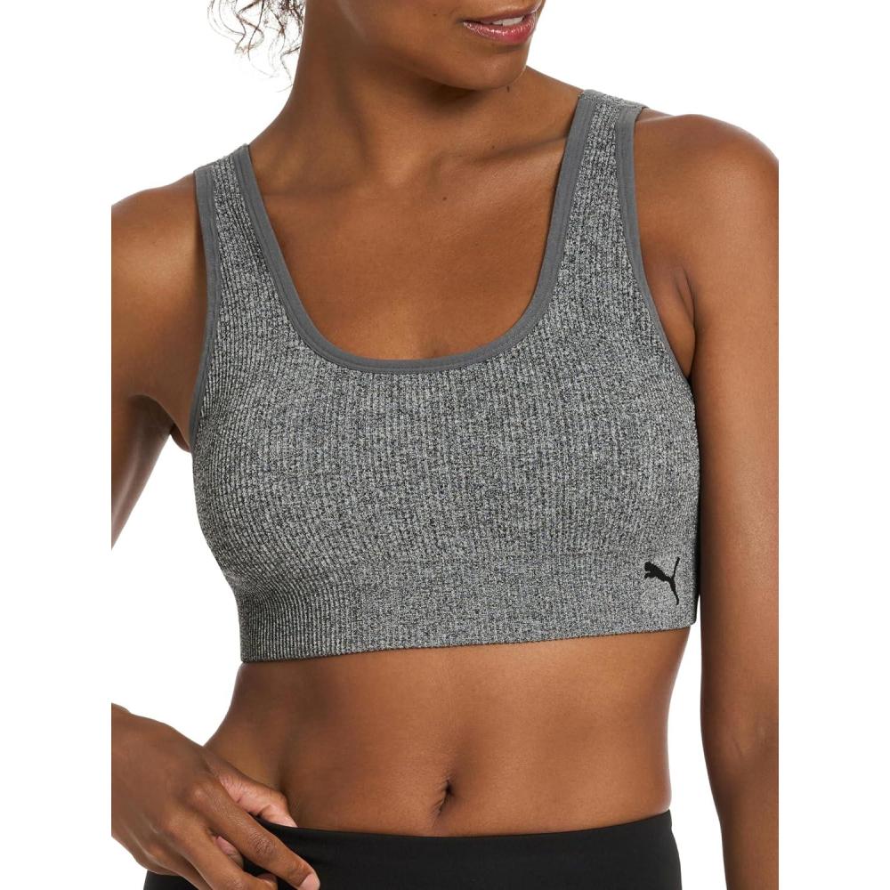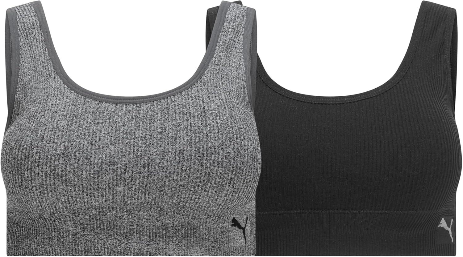 PUMA Women's 2 Pack Seamless Sports Bra(Black/Heather Grey Rib)