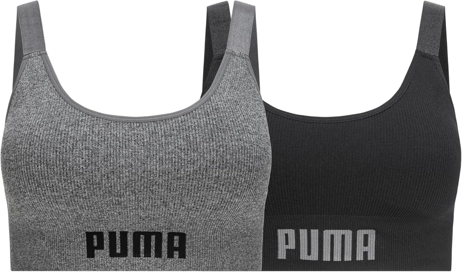 Experience sporty comfort and style with the PUMA Women’s 2 Pack Seamless Sports Bra. Featuring removable cups for customizable support and active stretch fabric, this bra ensures unrestricted movement and adapts to your every motion. The super soft blend of Nylon, Polyester, and Spandex delivers a gentle touch against your skin, while the seamless design eliminates chafing, making it ideal for everyday wear. Whether you're hitting the gym, running errands, or lounging at home, the PUMA Seamless Corset Bra is your ultimate companion. Elevate your activewear wardrobe with the perfect balance of support, style, and comfort.