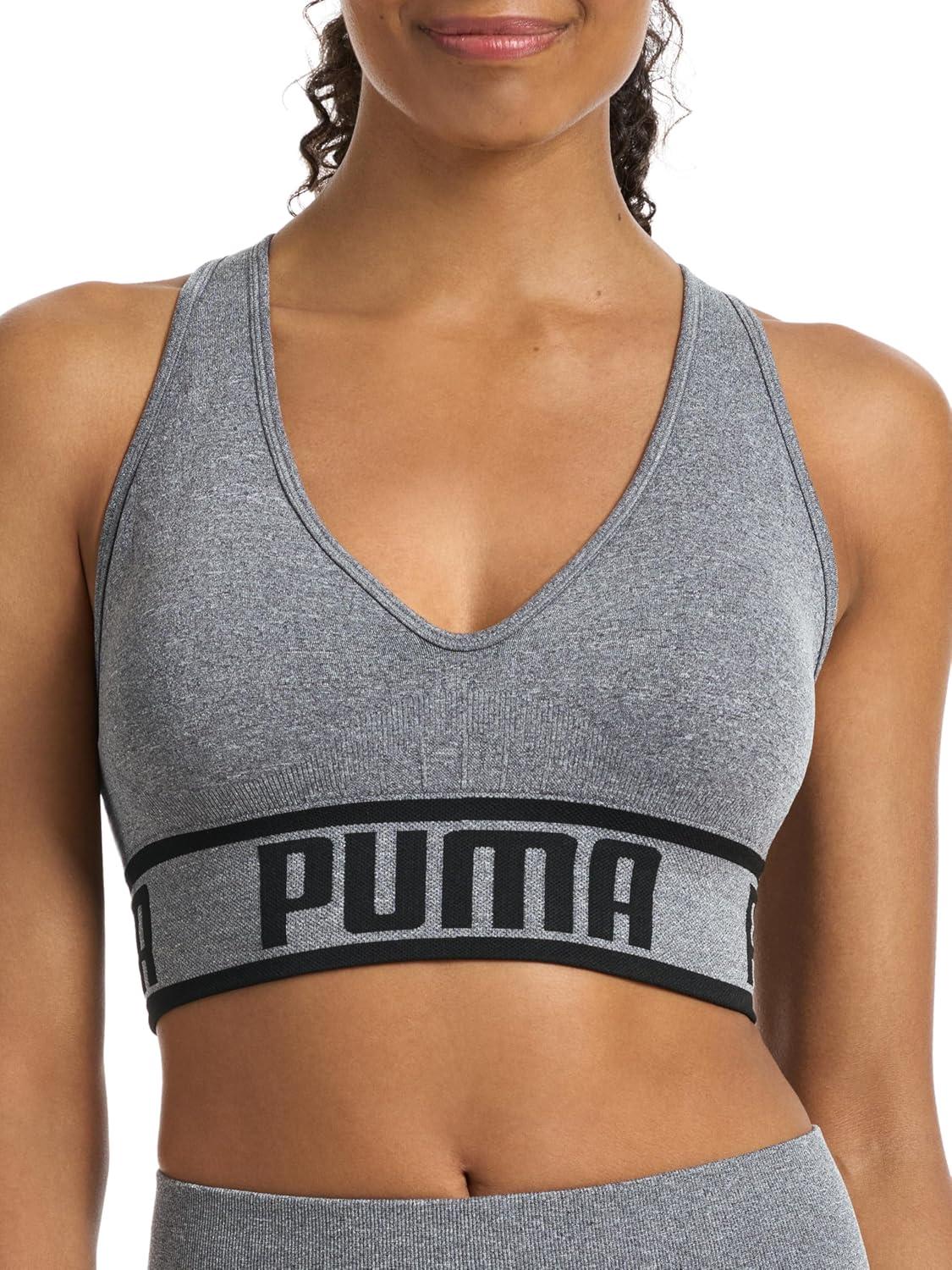 PUMA Women’s 2 Pack Seamless Sports Bra(Bark/Light Heather Grey)