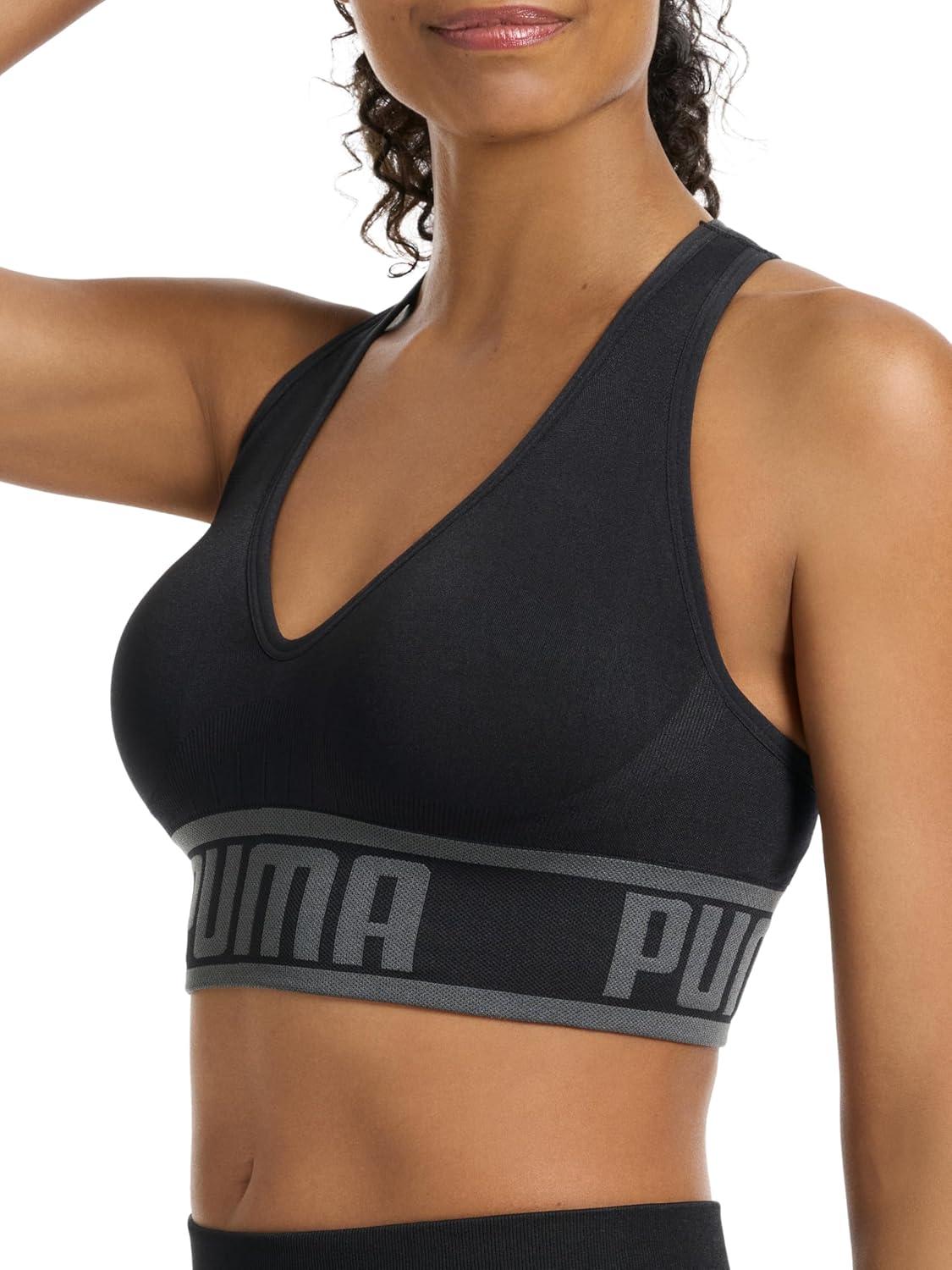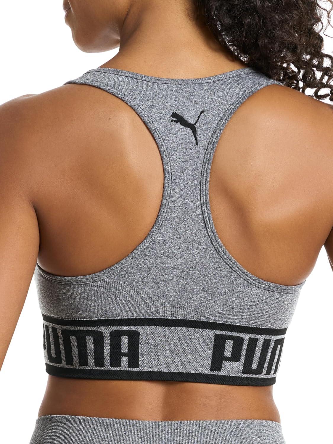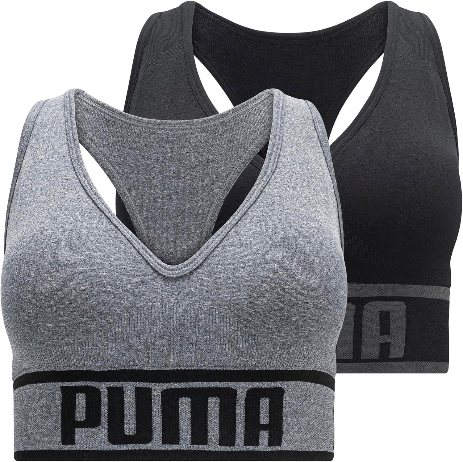 PUMA Women's 2 Pack Seamless Sports Bra(Black/Heather Grey)