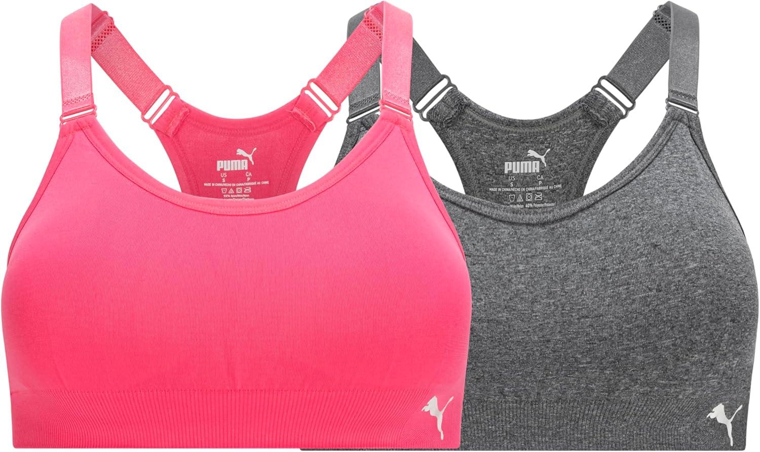 PUMA Women’s 2 Pack Seamless Sports Bra(Magic Rose/Heather Grey)