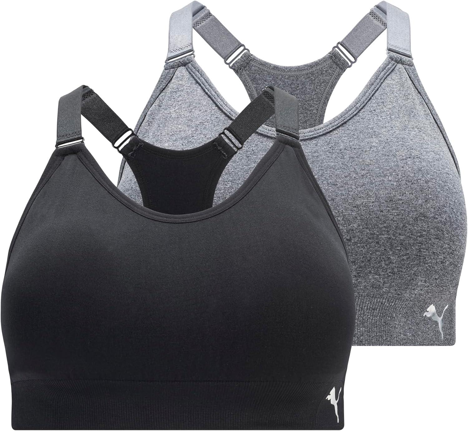 PUMA Women's 2 Pack Seamless Sports Bra(Puma Black/Heather Grey)