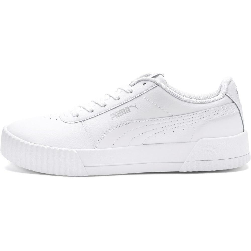 Carina l is taking inspiration from styles from the 80's – interpreted to fit today's laid-back sneaker look of californian beach towns. The leather upper is accented by a perforated vamp and a PUMA formstripe. The highlight of the shoe is the new cupsole tooling though with a slightly elevated platform sole with texture interest in toe and heel area and cat branding in the medial. The SoftFoam plus sockliner provides superior cushioning and optimal comfort for every step of your day. Lace closure for a snug fit