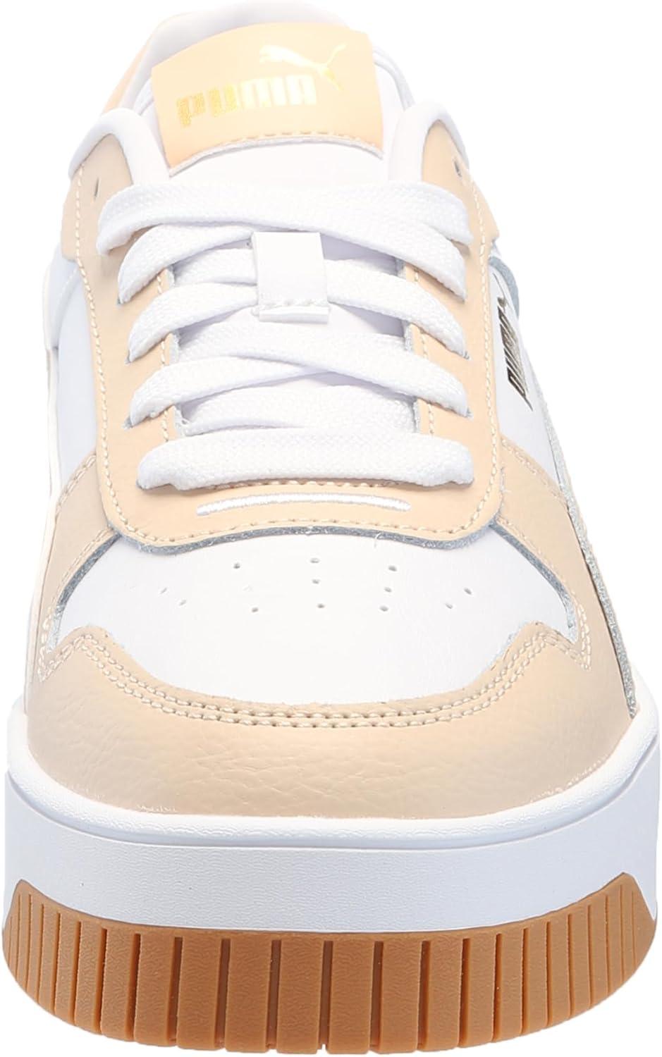 PUMA Womens Carina Street Sneaker(White-shifting Sand-metallic Gold)