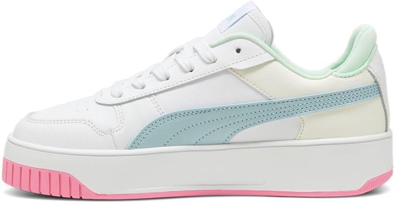 PUMA Womens Carina Street Sneaker(White-turquoise Surf-silver)