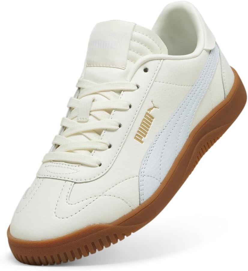 Introducing the PUMA Club 5v5, a remarkable addition to the world of women's fashion sneakers. Inspired by terrace culture, this shoe combines classic soccer DNA with a modern court silhouette, delivering a look that's both casual and refined. Thanks to its SoftFoam+ technology, the PUMA Club 5v5 provides unparalleled comfort with a step-in sockliner that features extra thick cushioning at the heel. This design ensures every step is a comfortable experience, making it a perfect choice for those seeking comfort shoes for women. Crafted with a coated leather and synthetic leather upper, these white sneakers for women showcase soccer-inspired stitching lines that capture attention. The iconic PUMA Formstrip, stitched on both the medial and lateral sides, contributes to the distinctive design along with the iconic foil print PUMA branding on the lateral sides. Whether you're looking for walking shoes women will love or sporty fashion sneakers for women, the PUMA Club 5v5 offers a stylish yet functional solution. Equipped with a rubber midsole, the shoe's low-to-the-ground outsole ensures excellent traction and control, ideal for active lifestyles or casual outings. Perfect for spring shoes collections, this versatile design seamlessly blends into various settings, making it suitable for women seeking both style and practicality in their footwear. Elevate your collection with the PUMA Club 5v5, where timeless design meets advanced comfort technology.