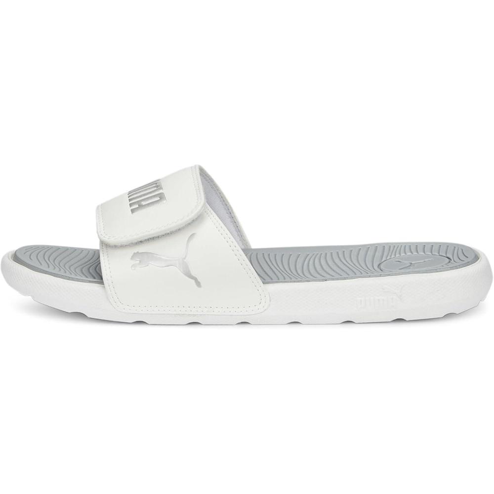PUMA Women’s Cool Cat Slide Sandal(Puma White-puma Silver-flat Light Gray)