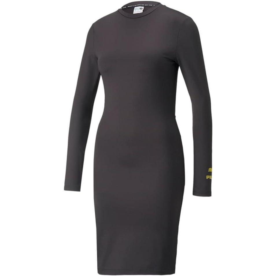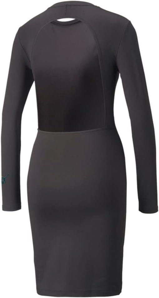 This slim fit dress features a back cut out and iridescent print log combination centered on lower back. Made with recycled fibers, one of PUMA´s answers to reduce our environmental impact. As bluesign® SYSTEM PARTNER we are a responsible acting party of the textile value chain, committed to a clean and safe input stream management approach.”