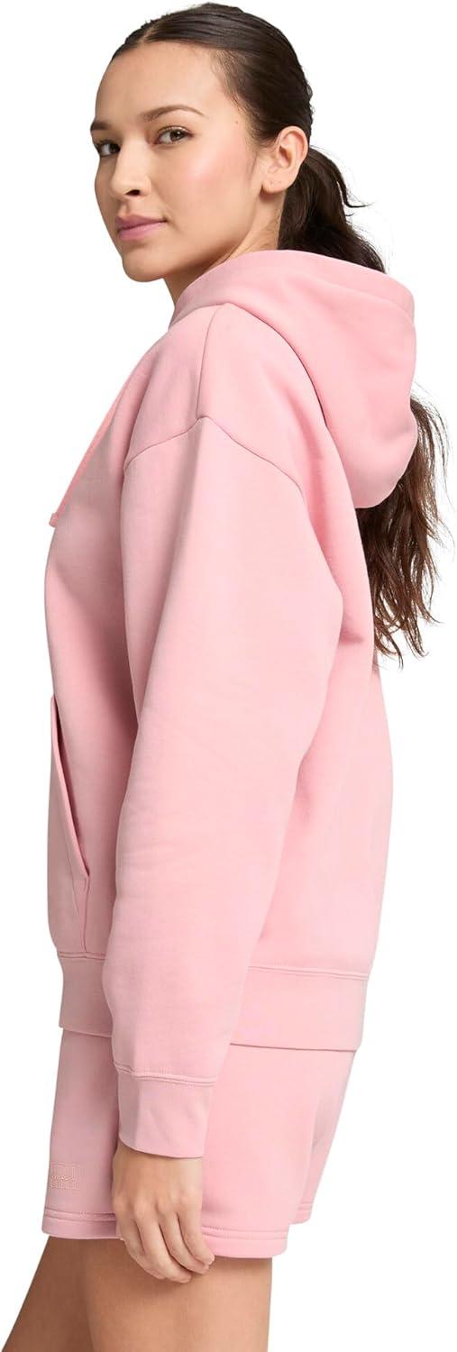 Elevate your everyday style with the PUMA Women’s Essentials Logo Fleece Hoodie, a perfect blend of comfort and fashion. This women's hoodie is crafted from a soft blend of 66% cotton and 34% recycled polyester, providing a plush feel that wraps you in warmth without being too heavy. Ideal for any occasion, whether running errands, hitting the gym, or simply relaxing at home, this fleece hoodie for women ensures you stay cozy and confident all day long. The fully adjustable hood with drawcords helps to block out the chill, while the ribbed cuffs and hem maintain a secure fit and trap heat efficiently. Designed with practicality in mind, the kangaroo pocket brings functional style, offering a handy spot for your essentials or a warm refuge for your hands. Showcasing bold PUMA branding on the chest, this hoodie stands out with its laid-back yet stylish flair. Available in regular and plus sizes, it offers a versatile regular fit allowing ample room to move. Built with high-quality construction and featuring at least 20% recycled materials, this essential piece not only exudes style but also supports sustainable fashion. Make the PUMA women's hoodie your go-to for a touch of casual elegance, knowing that it reflects your chic and eco-conscious choices.