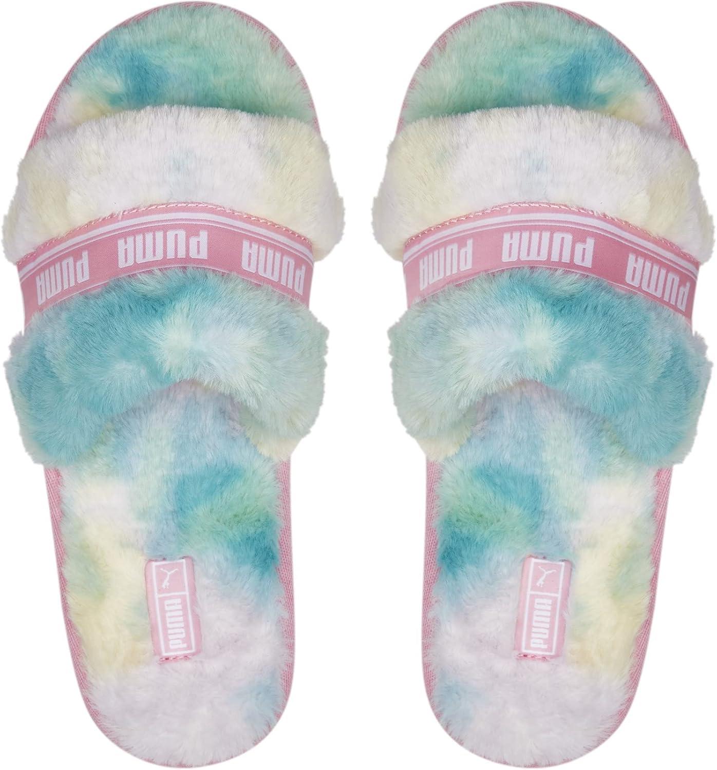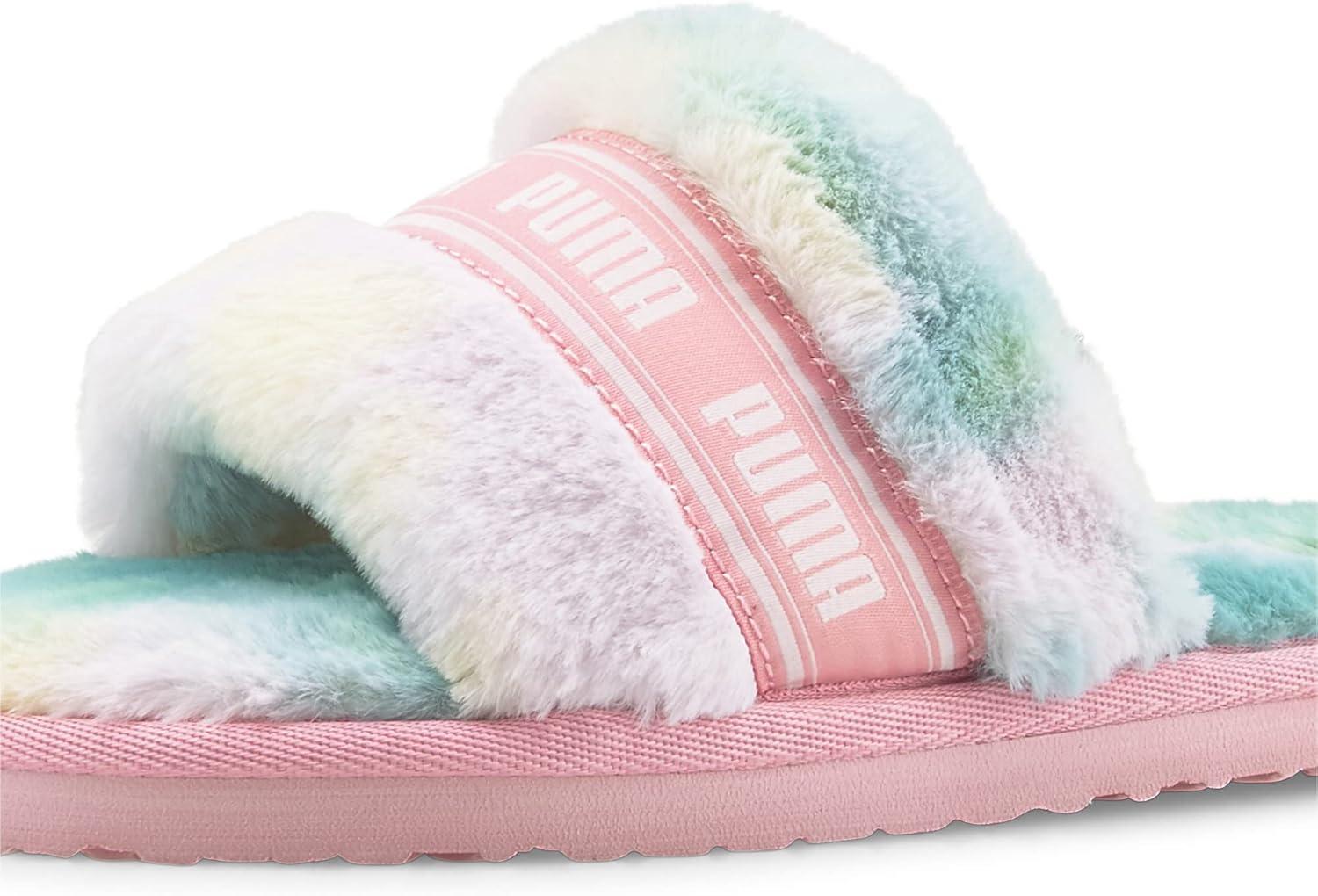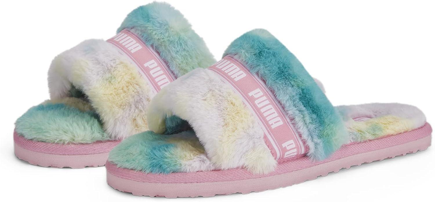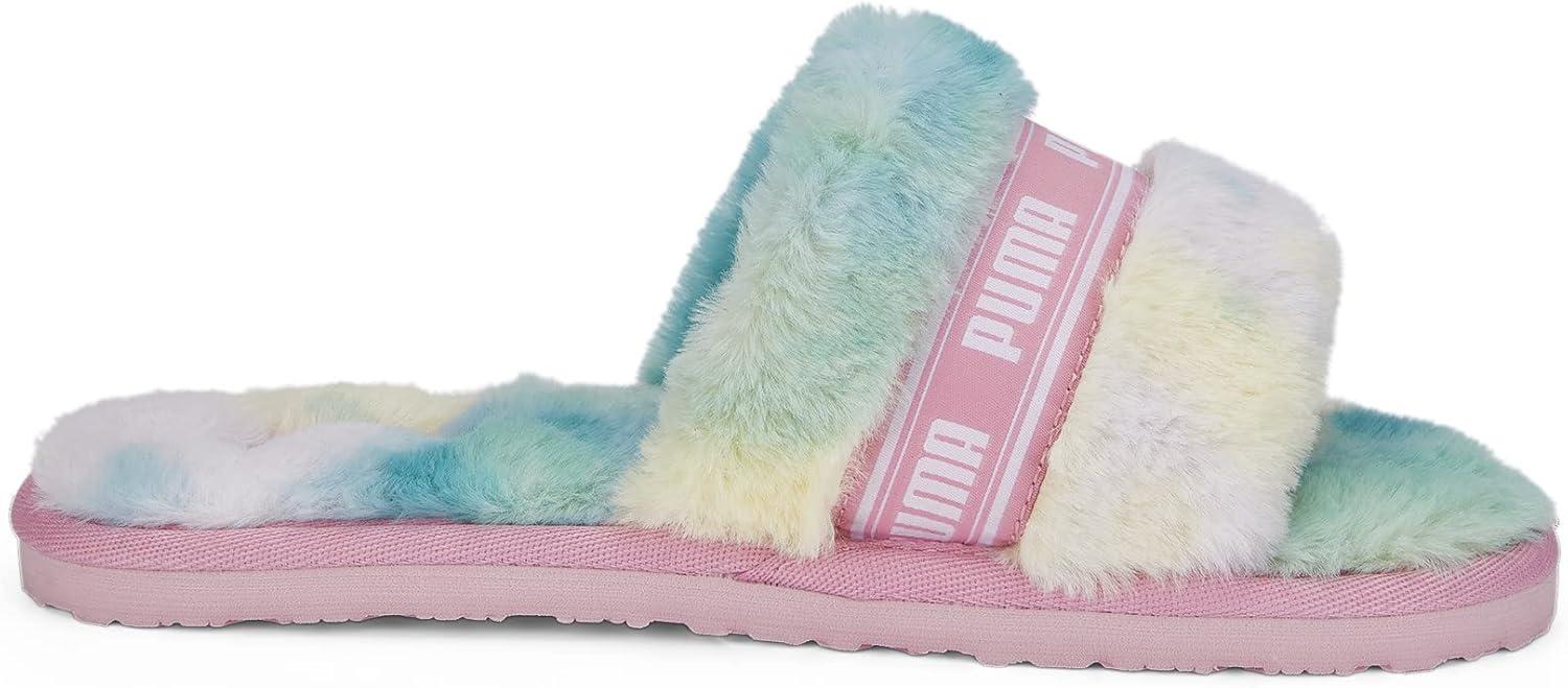 Take a step back and relax in our Fluff slides. Cozy, plush faux fur across both the strap and footbed. PUMA Cat Logos on the strap. Non-slip EVA outsole