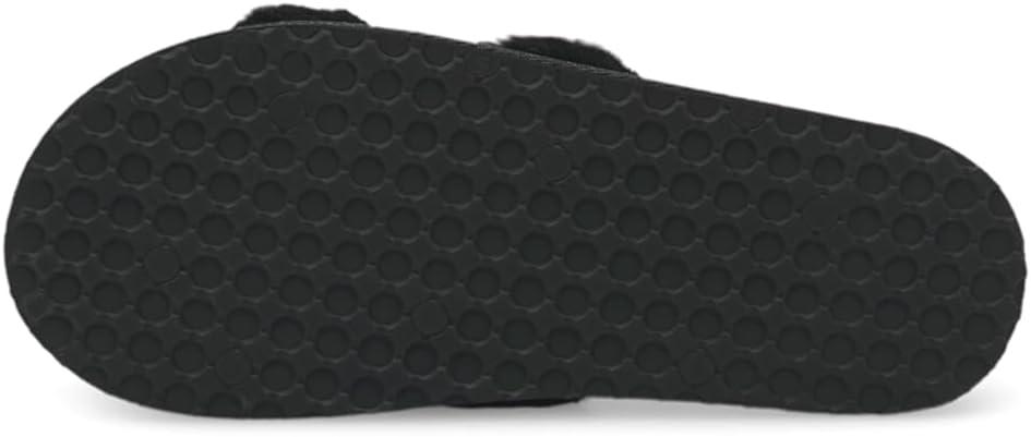 Take a step back and relax in our Fluff slides. Cozy, plush faux fur across both the strap and footbed. PUMA Cat Logos on the strap. Non-slip EVA outsole