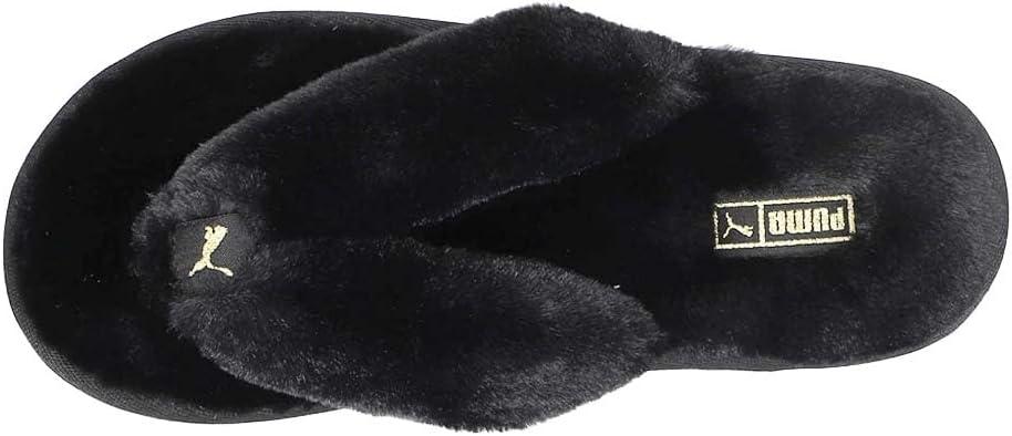 Take a step back and relax in our Fluff slides. Cozy, plush faux fur across both the strap and footbed. PUMA Cat Logos on the strap. Non-slip EVA outsole
