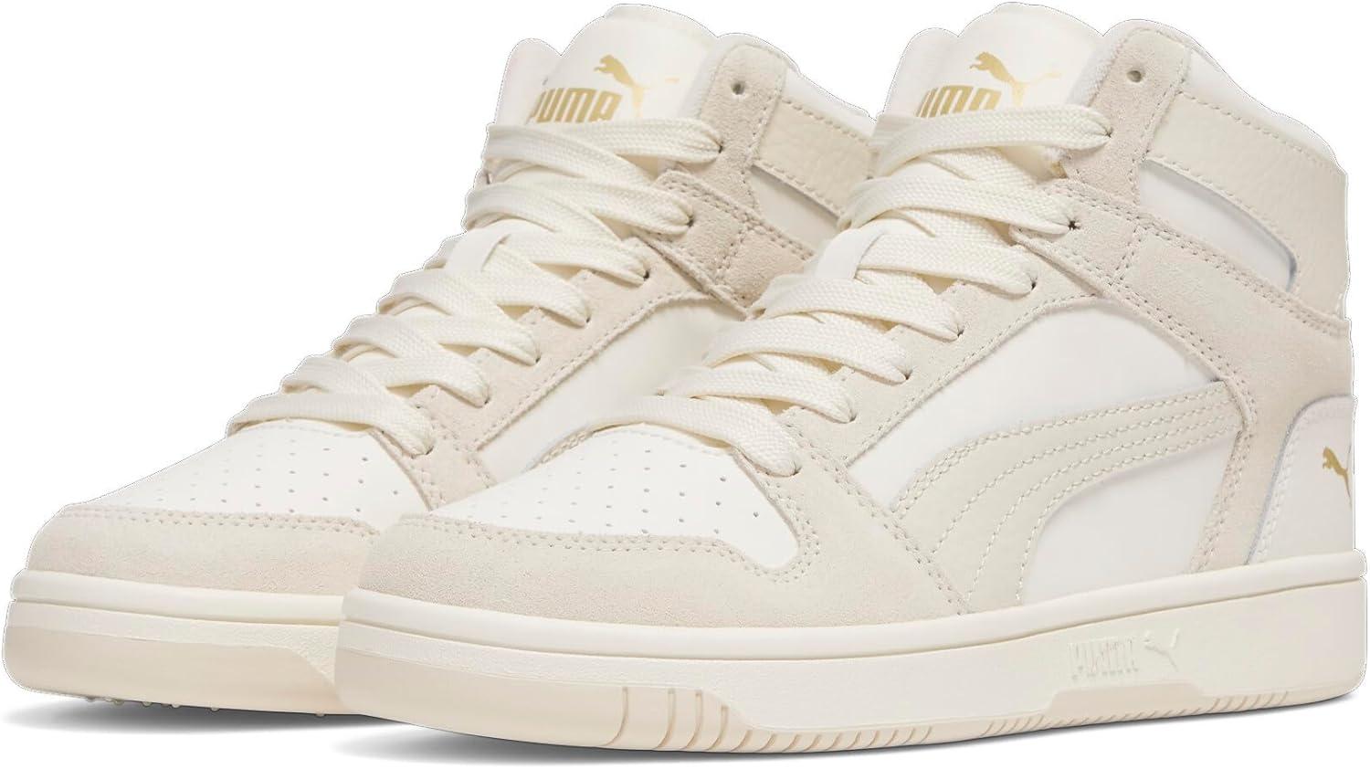 PUMA Women’s Rebound Layup Mid Shoes Sneaker(Warm White-alpine Snow-sugared Almond)