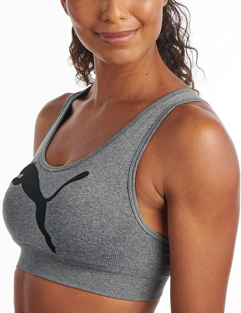 PUMA Women’s Seamless Padded Sports Bra(Big Cat Medium Heather Grey)