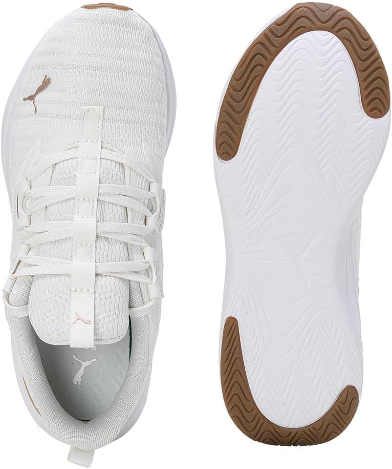 PUMA Women's Softride Harmony Cross Training Shoes, White-Black, 7.5(Warm White/Puma Gold/Puma White (02))